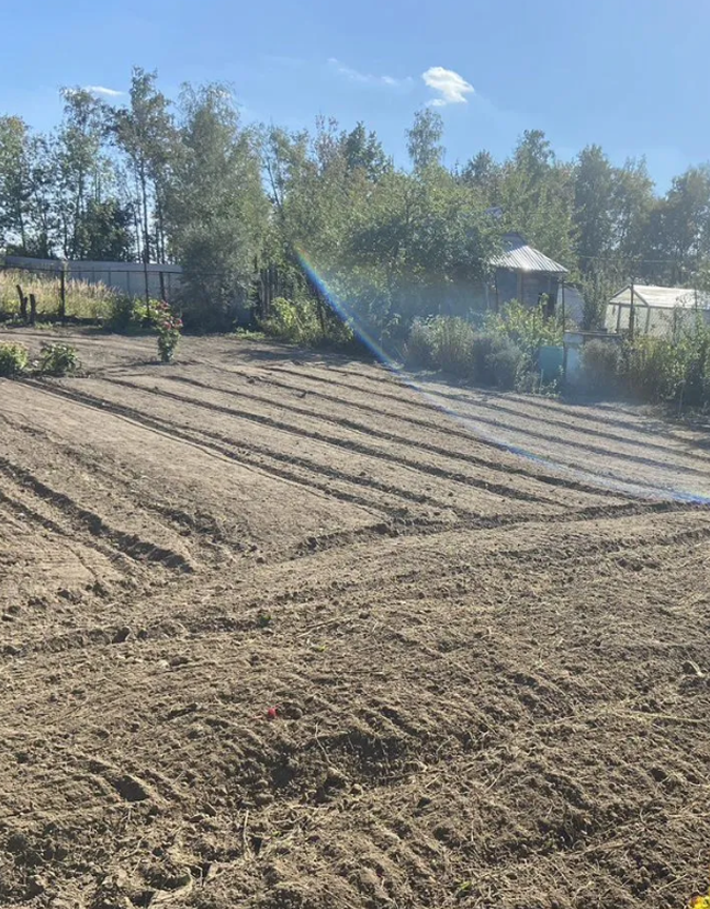 • Если по каким то причинам выяснилось во время вспашки фрезой, что был старый дом, сарай или еще что то. Где мусора и камней больше чем земли, цену обговариваем.